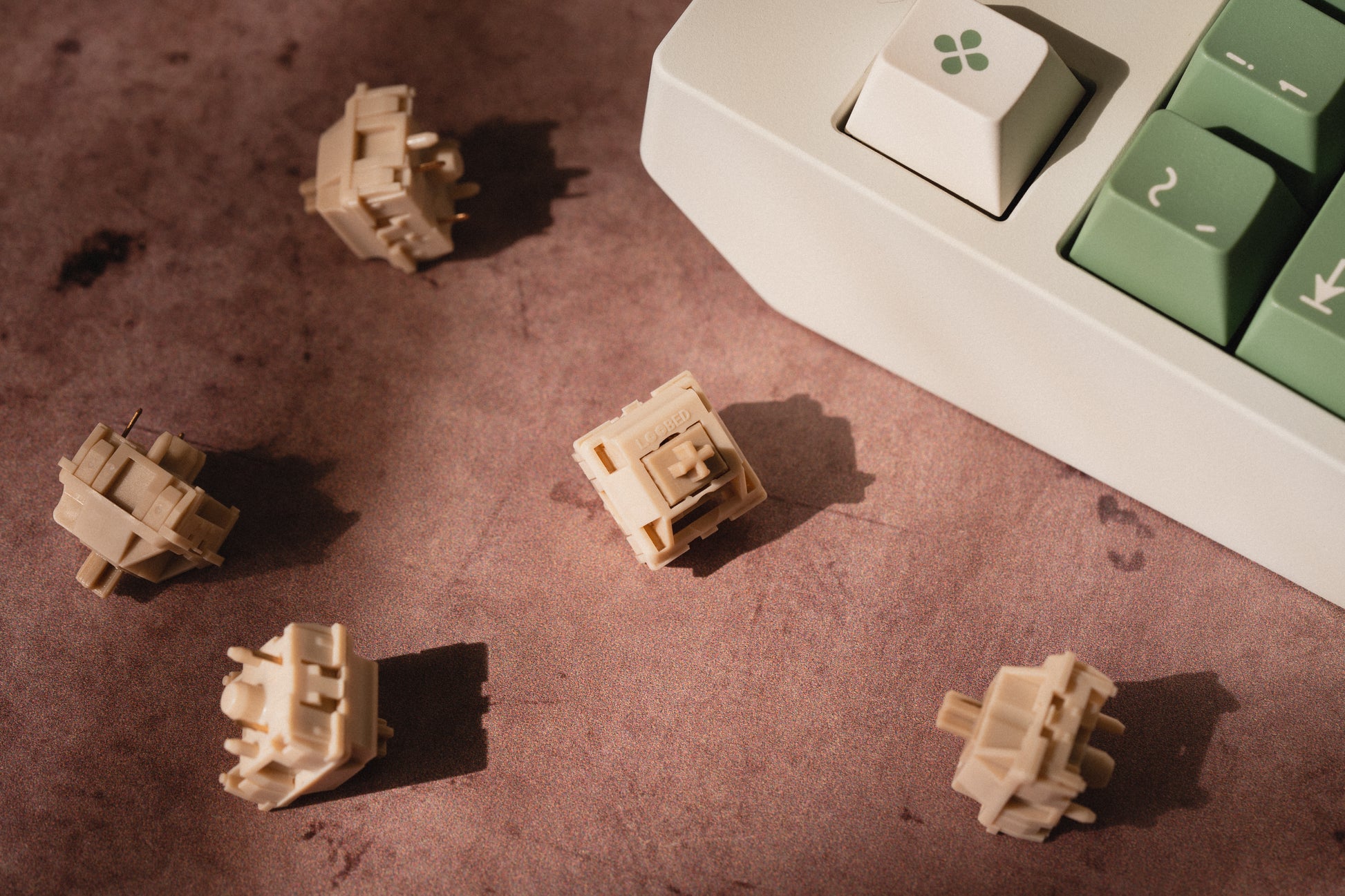 Oak switches are light tactile mechanical switches offered by the now-defunct Loobed Switches in collaboration with DotNick. They feature a full POM housing and stem for a naturally smooth travel with a subtle tactile bump, combined with a light spring and an overall refined feel right out of the box. These switches were available in both factory lubed and dry options depending on your preference, and were designed to deliver consistent tactility and a pleasant sound profile for both typing and casual gaming.
