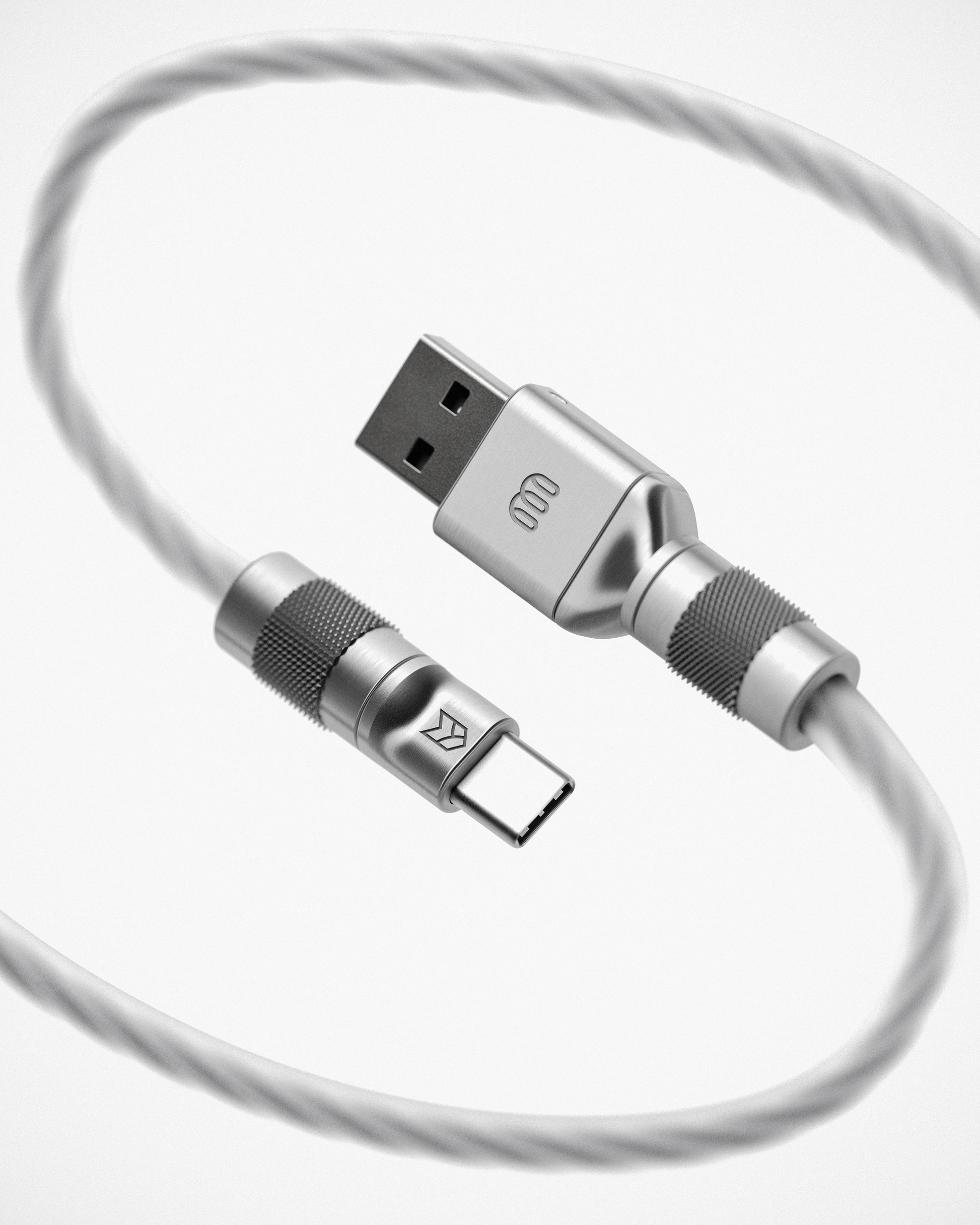 The X-Ray cable boasts an exclusive design, featuring translucent silicone cabling with white shielding and conductors. Its USB shells are CNC crafted from a custom copper alloy, with a matte silver PVD finish achieved through bead blasting. Additionally, the connectors offer a knurled grip and its slim silhouette ensures compatibility with various keyboards.